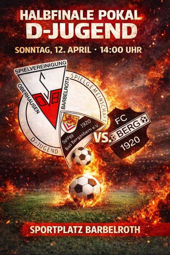 Unsere D-Junioren empfangen am kommenden Sonntag den FC Berg zum Pokalhalbfinale. Nachdem schon das Viertelfinale erst im 11m-Schießen entschieden wurde, brauchen wir auch dieses Mal Eure zahlreiche Unterstützung – feuert an, unterstützt, begleitet unsere Jungs ins Finale!